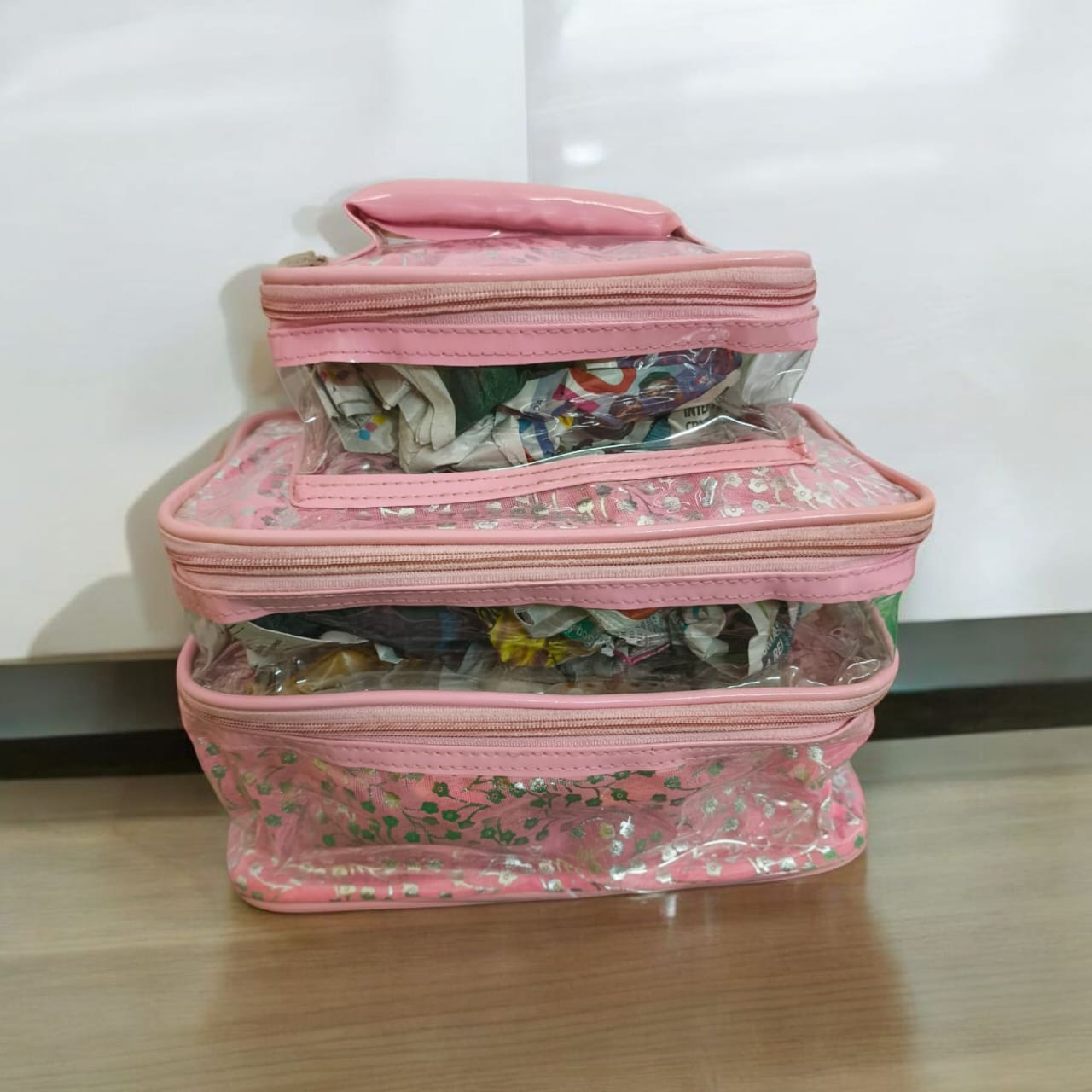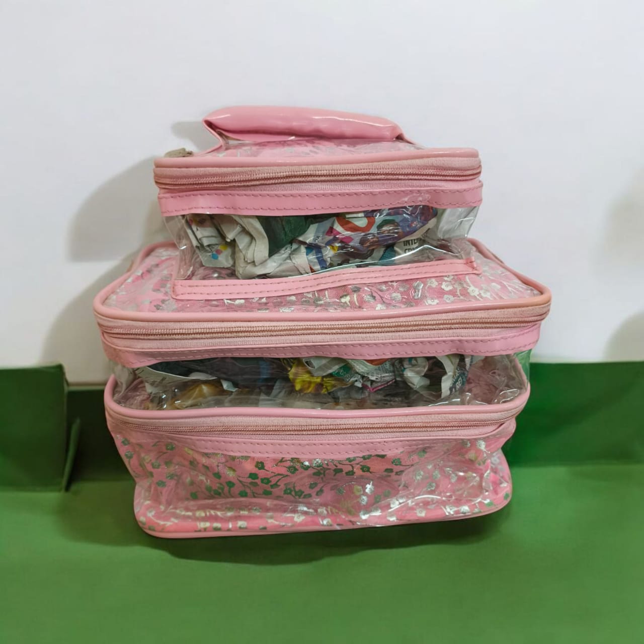 3 Layer Makeup Vanity Kit | Cosmetic Organizer Bag for Women | Pink | Bags for Women | Toiletry Bag (Pink) – 1 Piece