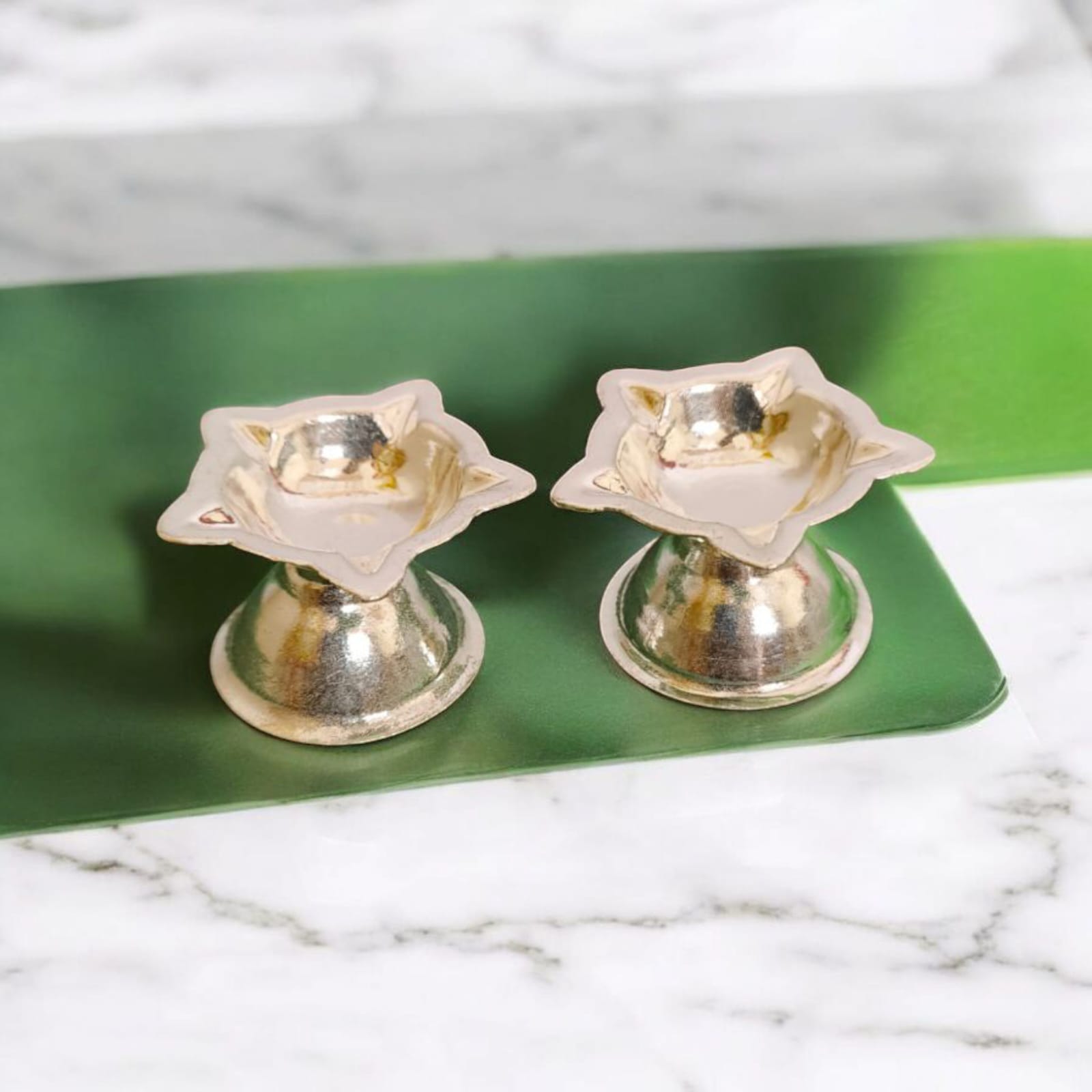 German Silver Diya Lamps (2 Pieces) For Pooja\Decor