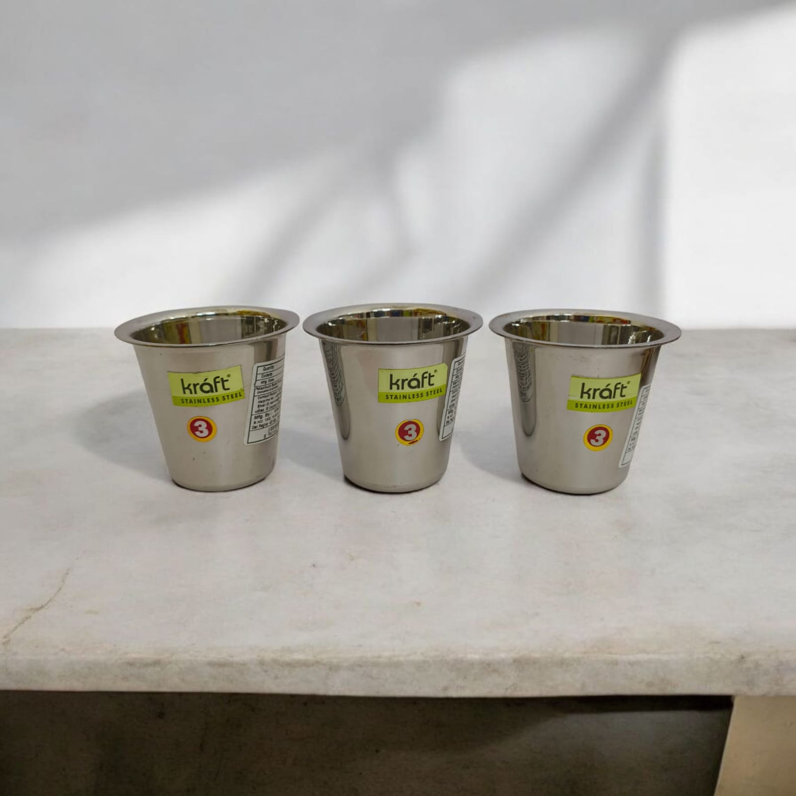 Kraft Stainless Steel Glasses – Set of 3 | Flared Rim Tumblers for Versatile Use